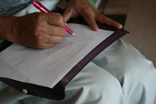 たまたま持ってた排紙の裏を使って、イメージを伝えて。手直ししていただいて。